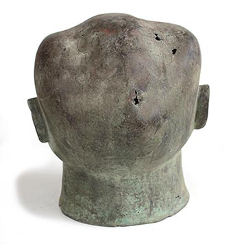 Corrosion damage under the right eye, next to the left eye and on the left side across the forehead to the back due to an impact, but this does not significantly detract from the overall impression. The nose is physiognomically striking. |