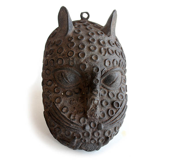 This leopard's face has minor damage to the nose and a few tiny holes caused by corrosion. Otherwise, it is in very good condition for its age.