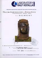 Die Schönheit dieses kleinen Kopfes erschließt sich erst auf den zweiten Blick. Etwas merkwürdig erscheint die sehr hohe Platzierung der Ohren. Da jedoch die gleiche Eigenschaft bei einem ähnlichen Kopf im Ethnologischen Museum Berlin auftaucht, wo er bis zum 25. Mai 2008 in der Ausstellung "Benin - 600 Jahre höfische Kunst aus Nigeria" zu sehen war, können wir davon ausgehen, dass diese Eigenheit als bewusstes Stilelement eingesetzt wurde. Ansonsten überzeugt der Kopf durch einen sehr sympathischen ruhigen Gesichtsausdruck. Er ist sehr gut erhalten und hat keine Fehlstellen.