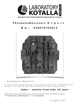 Repliken ist teilweise auch eine Bezeichnung, die sich nur aus den westlichen Zuordnungen ergibt. Für Nigerianer und in Bezug auf Bronzen ist es meist unerheblich, „echt" oder „falsch" anhand von Alter zu unterscheiden. Etwas differenzierter verhält es sich mit Objekten, die so hergestellt werden, dass sie alt aussehen und zunächst eine Betrugsabsicht dahinter steckt. Bei einem Ergebnis von unter hundert Jahren
