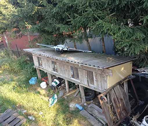 Unbewaffnete russische Gerbera-Drohne auf einem polnischen Kaninchenstall