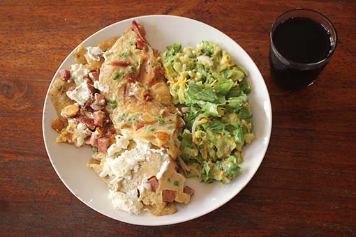 Das leicht süßliche als Nuance ginge wie beschrieben auch durch Banane und als Füllung ist ein Hummus natürlich genau so gut, aber beim morgendlichen Käse zum Frühstück hört der Spaß auf. Wenn beim Resteessen in der Pfanne dann kein Ei drübergehauen werden kann wird das Leben langweilig. Die Togoer legen sich sogar noch oben auf ihre Nationalspeise Spaghetti ein Omelette drauf. |