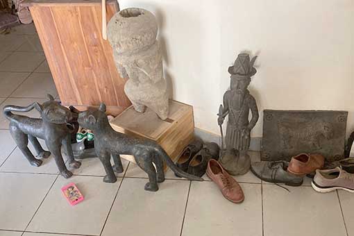 Auf dem Foto links zu sehen sind ein paar der Probeentnahmen, die ins Labor gehen. Der Schwerpunkt wird wieder die Benin- und Ife-Kultur sein, aber auch aus der Elfenbeinküste, Ghana, Mali. Der Schwerpunkt der Einkäufe liegt weiterhin auf Terrakotten und auf Bronzen, damit man über Labor eine Altersbestimmung machen kann.