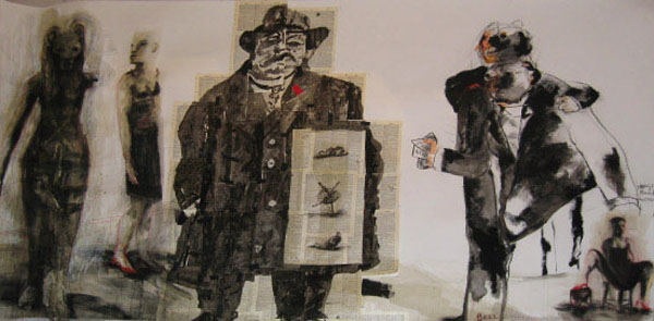 Deborah Bell, Robert Hodgins und William Kentridge, Untitled von 2009, verschiedene Materialien auf Papier, 270 mal 150cm, bei Goodman |