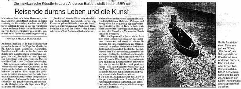 Stuttgarter Nachrichten. 10. August 2001 Laura Anderson Barbata - En el orden del caos |